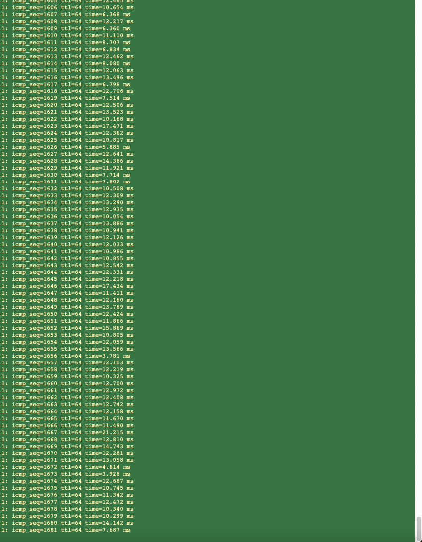 - 구글 DNS, 휴대용 라우터 게이트웨이 모두 핑이 동시에 빠짐.
